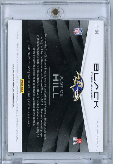 2019 Panini Black Football Justice Hill #94 /75 Rookie Patch Auto Rookie RC Football Card