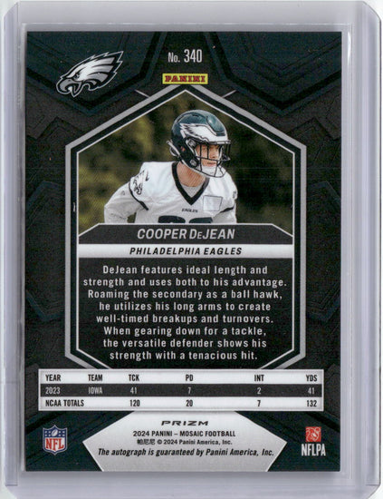 2024 Panini Mosaic Blue Prizm Cooper DeJean #340 Auto Rookie RC Football Card
