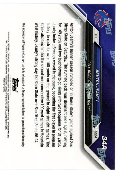 2024 Topps Bowman U Now Ashton Jeanty #34A Auto Orange 2/5 Boise State Broncos Rookie RC Football Card