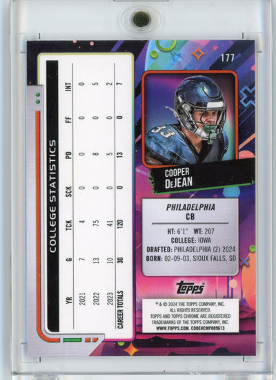2024 Topps Cosmic Chrome Cooper DeJean #177 Blue Moon Refractor /99 Rookie RC Philadelphia Eagles Football Card