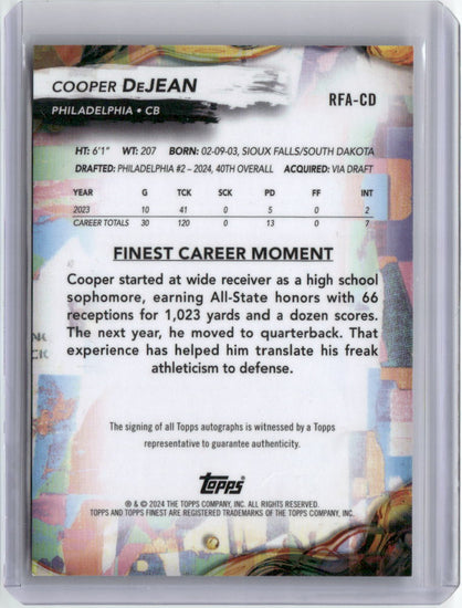 2024 Topps Finest Cooper DeJean #RFA-CD Auto Rookie RC Football Card