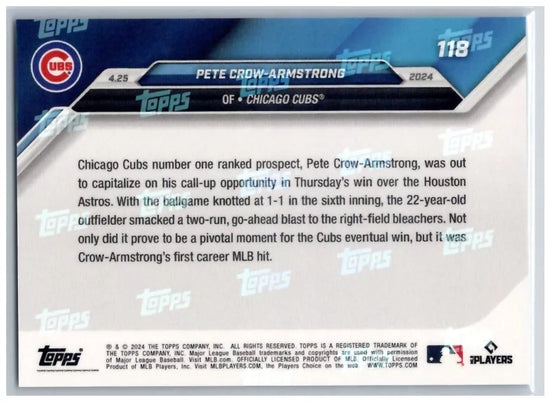 2024 Topps Now Pete Crow-Armstrong #118 Rookie RC Baseball Card