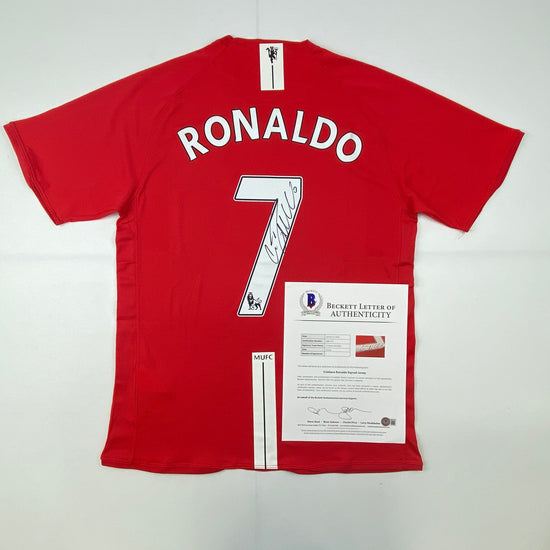 Autographed/Signed Cristiano Ronaldo Manchester United Red 2008 Soccer Futbol Jersey Beckett BAS COA/LOA