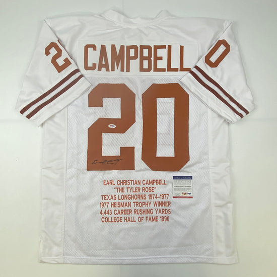 Autographed/Signed Earl Campbell Texas White Stat Football Jersey PSA/DNA COA