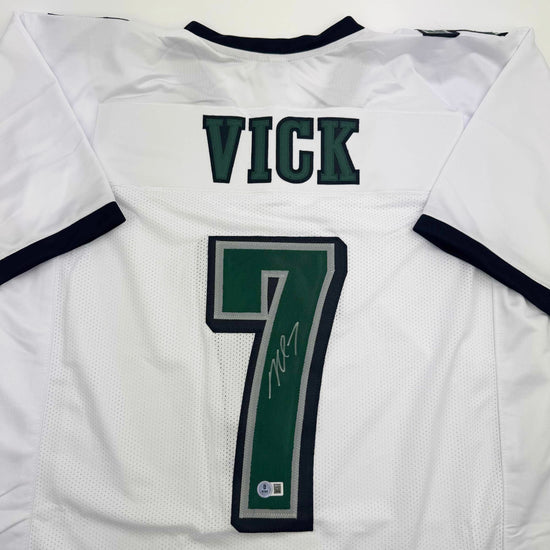 Autographed/Signed Michael Mike Vick Philadelphia White Football Jersey Beckett BAS COA