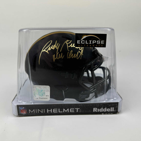 Autographed/Signed Rudy Ruettiger Never Quit Notre Dame Irish Black Eclipse Football Mini Helmet JSA COA