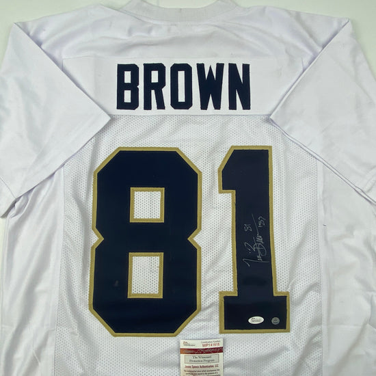 Autographed/Signed Tim Brown Notre Dame White College Football Jersey JSA COA