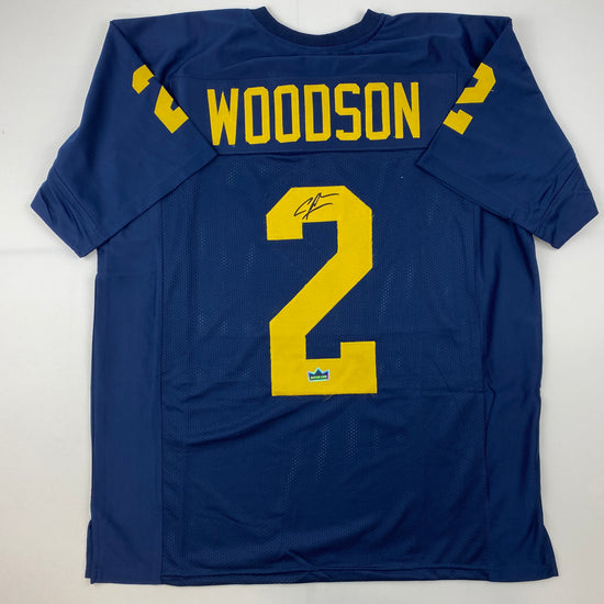 Facsimile Autographed Charles Woodson Michigan Blue Reprint Laser Auto College Football Jersey Size Men's XL