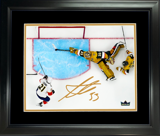 Framed Adin Hill The Save 2023 Stanley Cup Vegas Golden Knights Facsimile Laser Engraved Signature Auto 11"x14"Hockey Photo HOFSM Holo