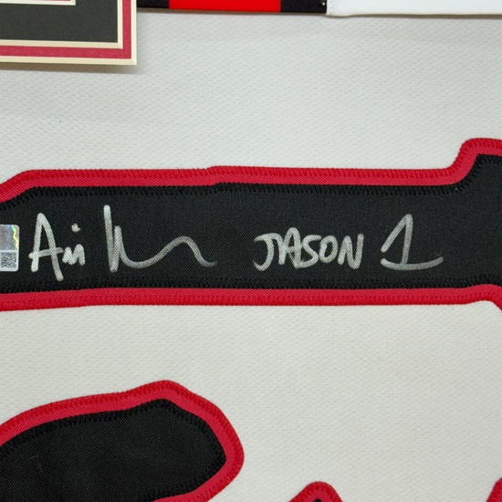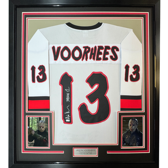 Framed Autographed/Signed Ari Lehman Jason Voorhees 35x39 Friday The 13th White Movie Jersey Steiner CX COA