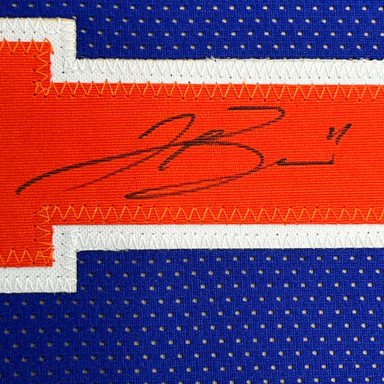 Framed Autographed/Signed Jalen Brunson 35x39 New York Blue Basketball Jersey Beckett BAS COA