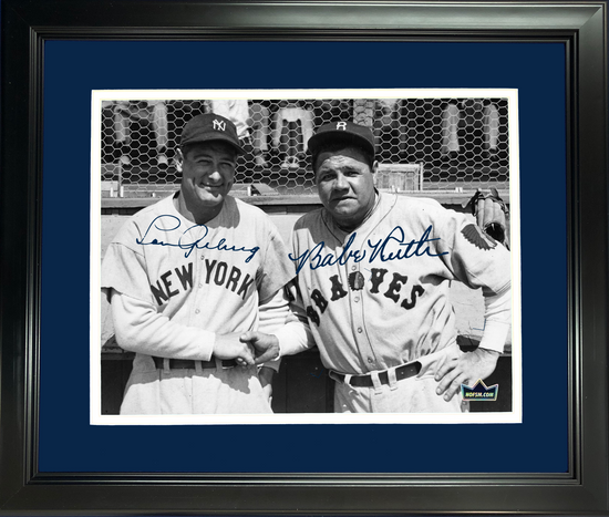 Framed Babe Ruth Lou Gehrig New York Yankees Facsimile Laser Engraved Signature Auto 11"x14" Baseball Photo HOFSM Holo