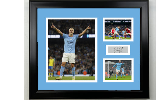 Framed Erling Haaland Manchester City Facsimile Laser Engraved Signature 14x11 3 Photo Collage