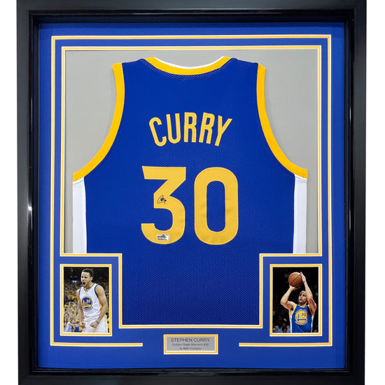 Framed Facsimile Autographed Stephen Steph Curry 35x39 Golden State Blue Reprint Laser Auto Basketball Jersey