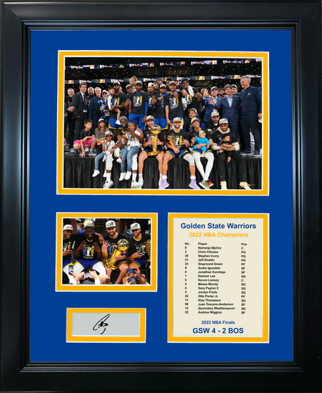 Framed Golden State Warriors 2022 NBA Finals Champions Stephen Curry MVP Facsimile Laser Engraved Signature Auto Basketball 11"x14" Photo Sig Collage