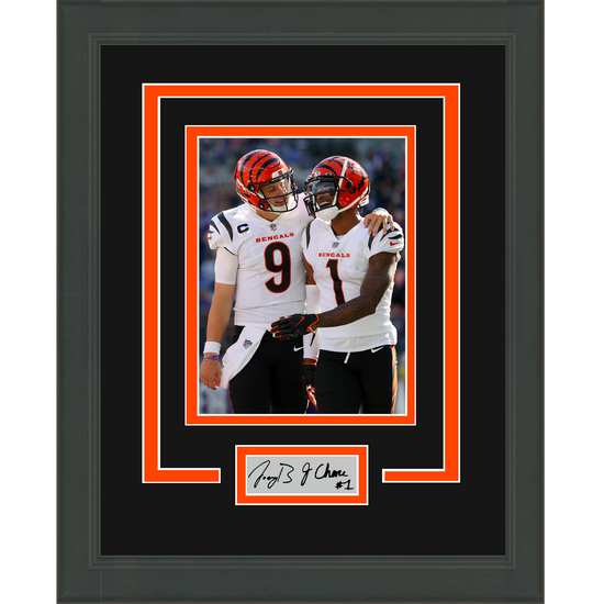Framed Joe Burrow Ja'Marr Chase Facsimile Laser Engraved Signature Auto Cincinnati Bengals 11x14 Football Photo