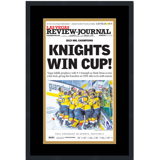 Framed Las Vegas Review-Journal Golden Knights 2023 Stanley Cup Champions 14x24 Hockey Newspaper Cover Photo Professionally Matted V1
