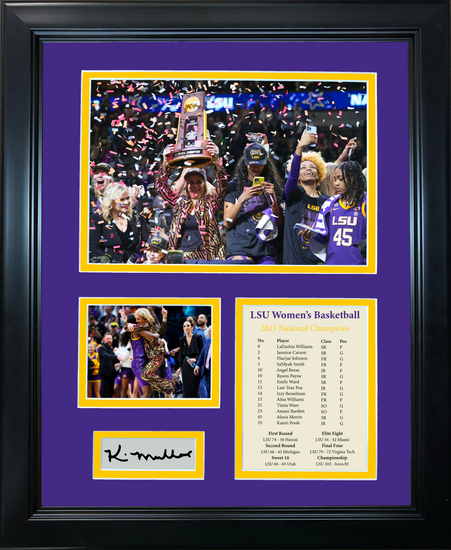 Framed LSU Tigers 2023 Women's NCAA National Champions Kim Mulkey Facsimile Laser Engraved Signature Auto 11"x14" College Basketball Photo Sig Collage