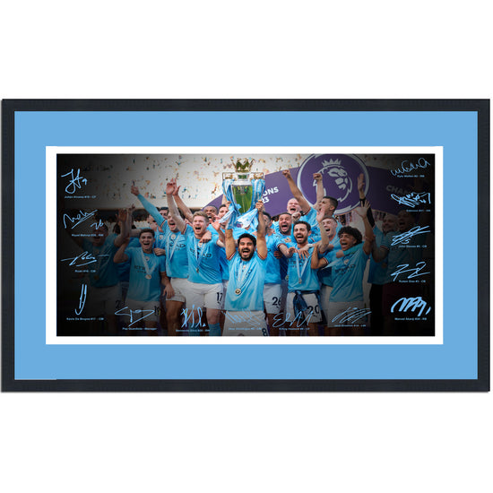 Framed Manchester City 2022/2023 Premier League Champions Facsimile Signature Team Auto 16x24 Soccer Photo