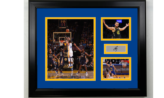 Framed Steph Curry Golden State Warriors Facsimile Laser Engraved Signature Basketball 14x11 3 Photo Collage