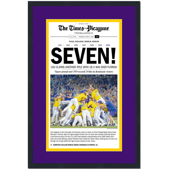 Framed The Times-Picayune New Orleans Advocate Seven LSU Tigers 2023 College Baseball World Series NCAA National Champions 14x24 Newspaper Cover Photo Professionally Matted V1