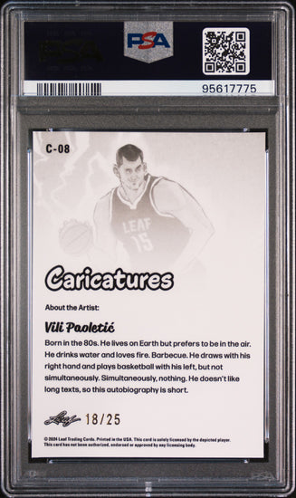 Graded 2024 Leaf Caricatures Nikola Jokic #8 Red #/25 Basketball Card PSA 10 Gem Mint
