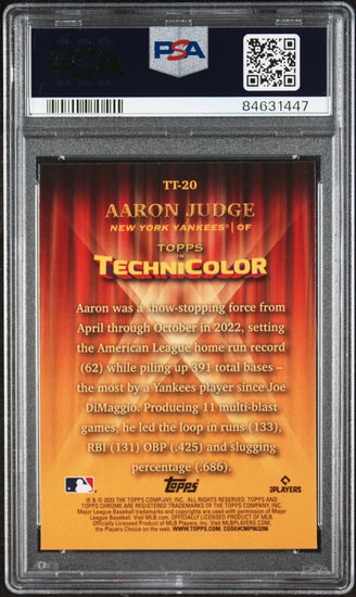 Graded 2023 Topps Chrome Aaron Judge #TT20 Topps in Technicolor Baseball Card PSA 10 Gem Mint