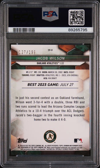 Graded 2023 Topps Bowmans Best Jacob Wilson #TP9 Top Prospects Aqua Lava #/199 Rookie RC Baseball Card PSA 10 Gem Mint