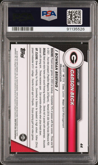 Graded 2023 Topps Bowman U Chrome Carson Beck #44 Rookie RC Football Card PSA 10 Gem Mint