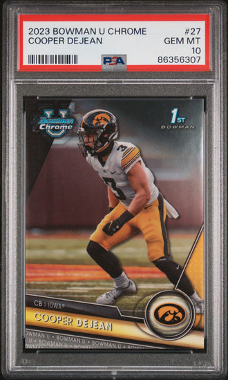 Graded 2023 Topps Bowman U Chrome Cooper DeJean #27 Rookie RC Football Card PSA 10 Gem Mint