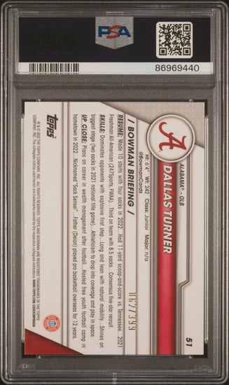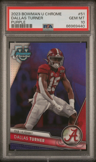 Graded 2023 Topps Bowman U Chrome Dallas Turner #51 Purple #/399 Rookie RC Football Card PSA 10