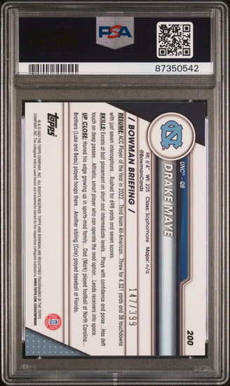 Graded 2023 Topps Bowman U Chrome Drake Maye #200 Purple Mini Diamond #/399 Rookie RC Football Card PSA 10 Gem Mint