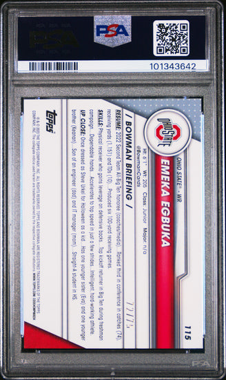 Graded 2023 Topps Bowman U Sapphire Emeka Egbuka #115 Yellow /75 Rookie RC Football Card PSA 10 Gem Mint