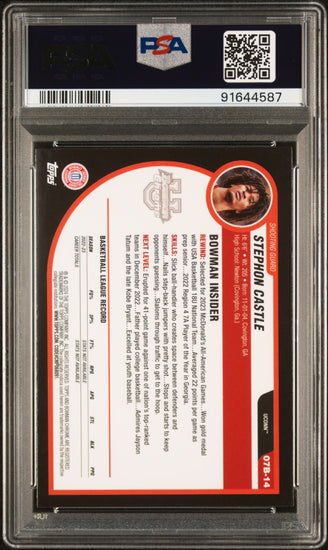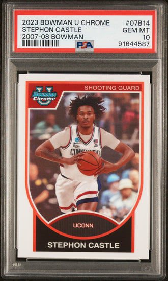 Graded 2023 Topps Bowman U Chrome Stephon Castle #07B14 2007-08 Bowman Rookie RC Basketball Card PSA 10 Gem Mint