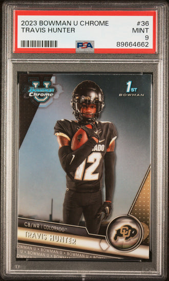 Graded 2023 Topps Bowman U Chrome Travis Hunter #36 Rookie RC Football Card PSA 9 Mint