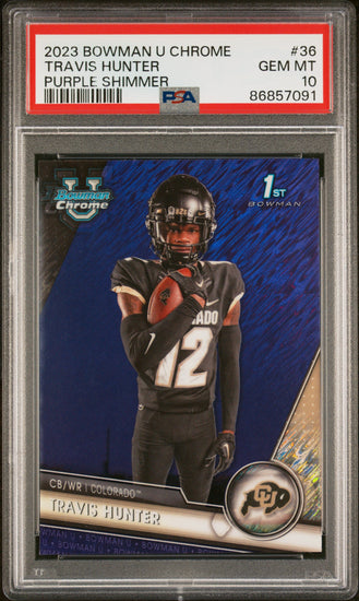 Graded 2023 Topps Bowman U Chrome Travis Hunter #36 Purple Shimmer Rookie RC Football Card PSA 10 Gem Mint