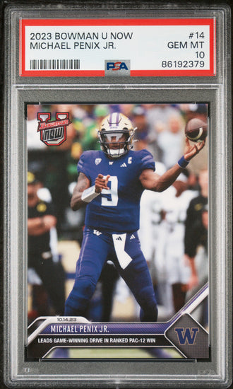Graded 2023 Topps Bowman U Now Michael Penix Jr. #14 Rookie RC Football Card PSA 10 Gem Mint