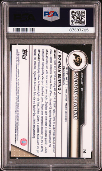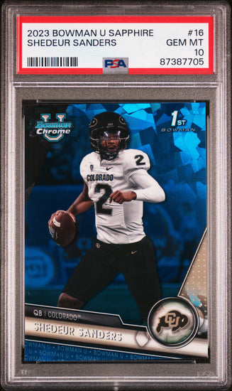 Graded 2023 Topps Bowman U Sapphire Shedeur Sanders #16 Rookie RC Football Card PSA 10 Gem Mint