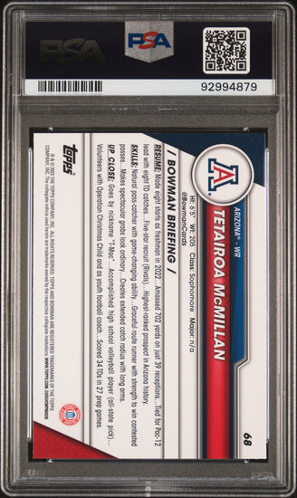 Graded 2023 Topps Bowman U Sapphire Tetairoa McMillan #68 Rookie RC Football Card PSA 10 Gem Mint