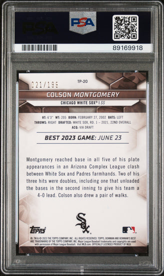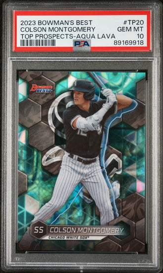 Graded 2023 Topps Bowmans Best Colson Montgomery #TP20 Top Prospects Aqua #/199 Rookie RC Baseball Card PSA 10 Gem Mint