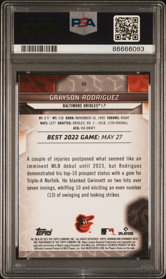 Graded 2023 Topps Bowmans Best Grayson Rodriguez #25 Rookie RC Baseball Card PSA 10 Gem Mint