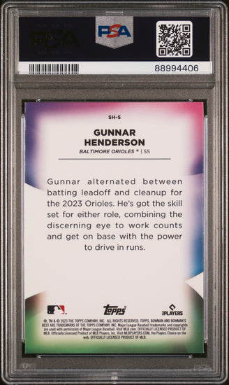Graded 2023 Topps Bowmans Best Gunnar Henderson #SH5 Shellacked Rookie RC Baseball Card PSA 9 Mint