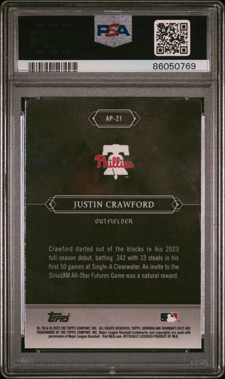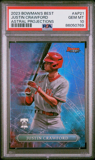 Graded 2023 Topps Bowmans Best Justin Crawford #AP21 Astral Projections Rookie RC Baseball Card PSA 10 Gem Mint