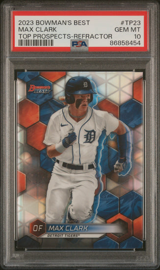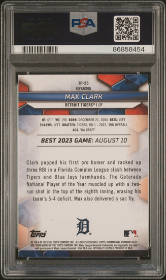 Graded 2023 Topps Bowmans Best Max Clark #TP23 Top Prospects Refractor Rookie RC Baseball Card PSA 10 Gem Mint
