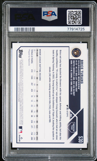 Graded 2023 Topps Brice Turang #530 Royal Blue Rookie RC Baseball Card PSA 10 Gem Mint