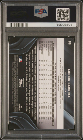 Graded 2023 Topps Chrome Black Corbin Carroll #93 Rookie RC Baseball Card PSA 10 Gem Mint