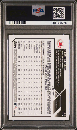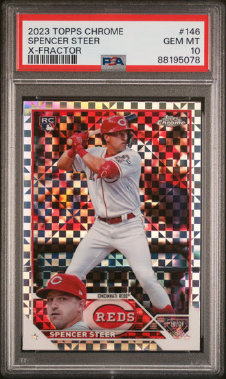 Graded 2023 Topps Chrome Spencer Steer #146 XFractor Rookie RC Baseball Card PSA 10 Gem Mint