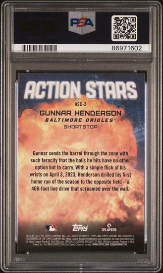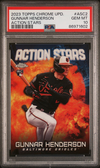 Graded 2023 Topps Chrome Update Gunnar Henderson #ASC2 Action Stars Rookie RC Baseball Card PSA 10 Gem Mint