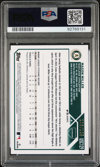 Graded 2023 Topps Chrome Update Mason Miller #USC129 Blue/Green Lava Lamp #/125 Rookie RC Baseball Card PSA 10 Gem Mint