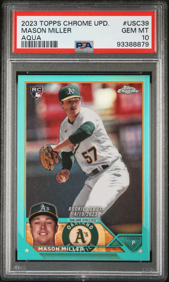 Graded 2023 Topps Chrome Update Mason Miller #USC39 Aqua #/199 Rookie RC Baseball Card PSA 10 Gem Mint